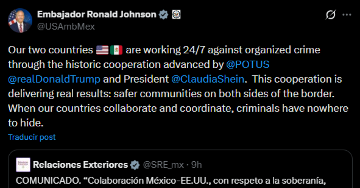 El embajador Ronald Johnson subrayó la efectividad de la cooperación bilateral en el combate al crimen organizado, señalando que la estrategia conjunta entre la administración …