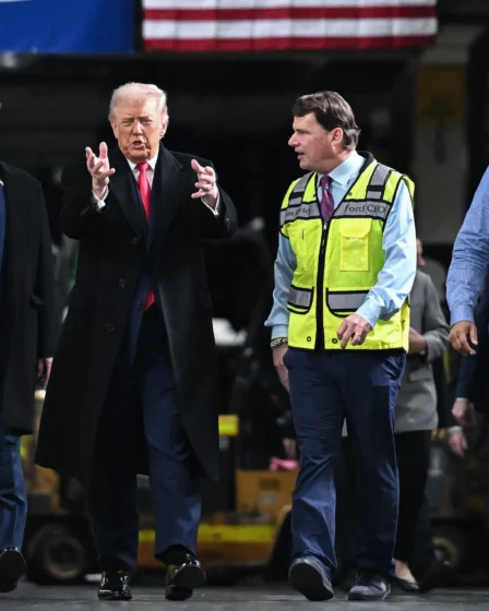 Un video capturado durante una visita del presidente Donald Trump a una planta de Ford en Michigan muestra al mandatario respondiendo con insultos y levantando …