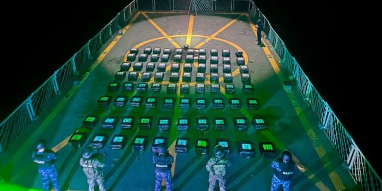 García Harfuch indicó que en lo que va de la administración de la presidenta Claudia Sheinbaum Pardo “suman más de 60 toneladas de esa droga asegurada en mares mexicanos, lo que representa una afectación directa a las estructuras financieras del crimen organizado y evita que esta droga llegue a las calles” .