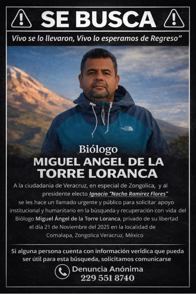 Los hechos se remontan al 21 de noviembre de 2025, alrededor de las 16:30 horas, en la localidad de Comalapa, en la Sierra de Zongolica. De acuerdo con el recuento oficial de su familia, el biólogo fue citado en el lugar por sujetos que presuntamente se dedican a la extorsión, bajo el falso argumento de establecer un “diálogo” para garantizar su seguridad. Horas después, los captores se comunicaron con un familiar directo para exigir el pago de un rescate.