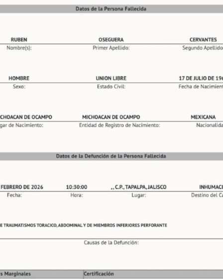 El documento oficial del Registro Civil confirma que el líder del CJNG falleció el 22 de febrero de 2026 durante un operativo federal en Tapalpa, …